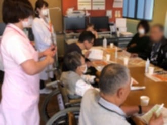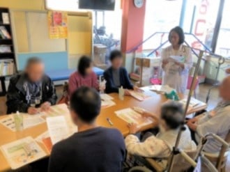 理学療法士から透析中に簡単にできる自主運動を紹介してもらい、管理栄養士からは筋力アップのための食事ポイントなどの話をしました。