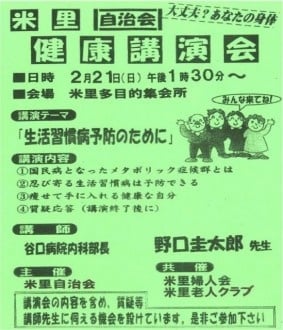 平成22年2月21日に米里多目的集会所にて健康講演会を行いました。