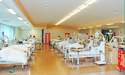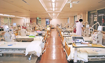 透析ベッド全38床。患者さんの状態により第1透析室と第2透析室に部屋分けをして対応しています。