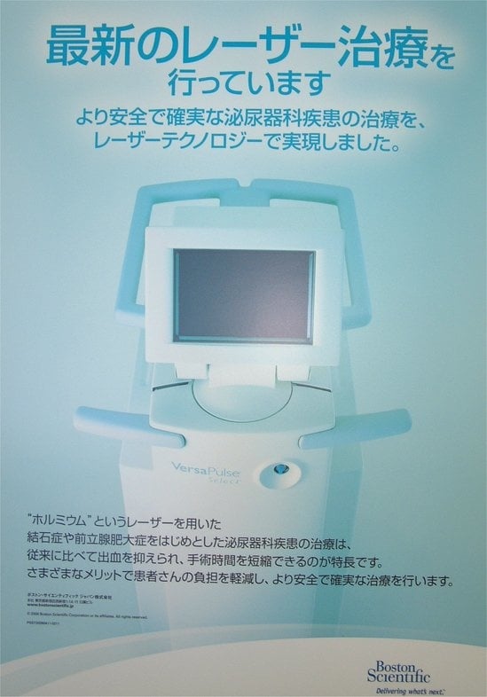 HoLAP・HoLEPはより低侵襲な次世代の治療法で、前立腺肥大症(BPH)治療においてTURP(経尿道的前立腺切除術)に替わる新たな選択肢となります。レーザーエネルギーを利用して前立腺組織を蒸散・核出するもので、HoLAPは側射ファイバーから前立腺へレーザーエネルギーを照射、蒸散し、HoLEPは直射ファイバーを用い、前立腺を核出します。HoLAP・HoLEPは物理的に肥大した前立腺を蒸散・核出し、即時的に前立腺体積を減少させ、尿流量を改善します。
